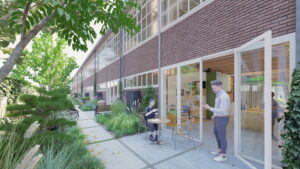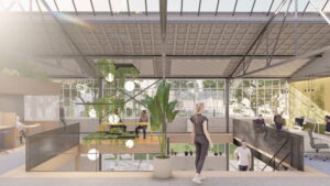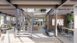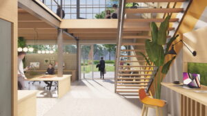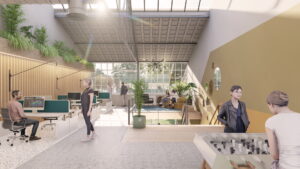 Zecc Architecten uit Utrecht heeft het ontwerp gemaakt voor de duurzame transformatie van de Onderdelenloods en huurt zelf een XL studio centraal in de loods.